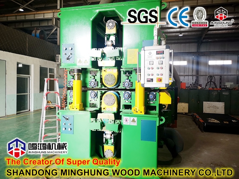 Die Anweisung der Schleifmaschine: Die Schleifmaschine ist der letzte Schritt zur Herstellung von Sperrholz, um die Sperrholzdicke genauer und ausgewogener zu machen, die Oberfläche glatter und heller zu machen, wir haben zum Beispiel verschiedene Typen 1 Kopf, 2 Köpfe, 3 Köpfe, einseitig, doppelseitig, geringes Gewicht und hohe BeanspruchungEinige möchten die Dicke sehr genau kalibrieren, andere möchten die Oberfläche sehr glatt halten, daher bieten wir Ihnen die am besten geeignete Schleifmaschine an. Dies ist eine doppelseitige Kalibriermaschine: Präzise Kalibriermaschine zum Schleifen von Sperrholzplatten